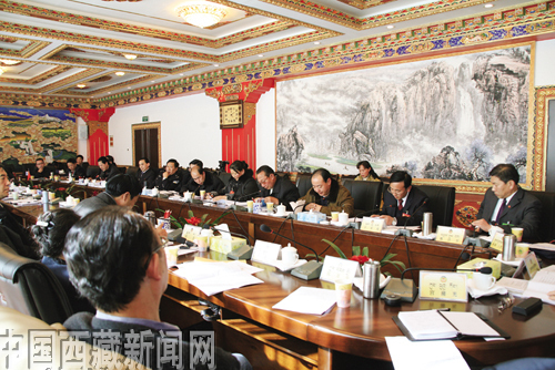 资料图片:政协第九届西藏自治区委员会第二次会议上委员们正在认真履行参政议政职能。图为政协委员们正在分组讨论常委会工作报告。(图片来源:《西藏日报》)
