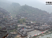 从观景台上俯瞰苗寨,尤感气势磅礴]]>