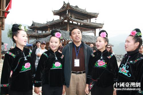 中国台湾网10月17日贵州西江消息  饱览苗寨建筑风格,欣赏大型民族歌舞剧——《情满西江》,对山歌,买银饰,吃长桌席,全国40家网络媒体今日在黔东南西江千户苗寨恋恋采访中。请大家跟随本网记者的镜头慢慢领略苗族文化的原版史书。(记者 杨永青)