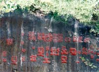 红崖古迹(又称红崖碑,红崖天书)位于安顺以西50公里黄果树晒甲山上,史称“南中第一奇迹”,为我国八大神秘文字之一。一壁长达百米,高30米的巨大浅红色石屏上,有二十余个铁红色字,非阴非阳,非籀非篆,非楷非隶,排列不齐,错落差。奥妙难解的文字,从明代至今,若干中外专家学者亲临考究,众说纷纭,莫衷一是。光绪年日本学者德丸作藏,德国学者柏如雷·弗岗海尔等考察后认为这一遗迹“含有绝对的神秘性”。近年来的“红崖热”,又引起国内很多史学家、考古学家、文字家、民族学家以及外国的一些汉学家的极大兴趣,并着力于红崖研究,但均无定论,红崖古迹是为“千古之谜”。1994年在历代20余种摹本中选6种刻于红崖周围,供游人鉴赏。
