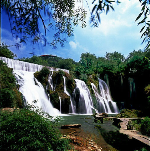 天河潭景区位于贵阳市花溪区境内,距离贵阳市区24公里,距离花溪13公里,距离贵阳(龙洞堡)国际机场10公里,距离贵阳(磊庄)机场6公里,交通十分便利。 该景区山水相连、山中有水、水中有洞、洞中有潭,集明媚多姿的湖光山色、美妙神奇的溶洞奇观和景色景物蕴藏的丰富文化内涵于一身,令人留连忘返。 景共内有水洞和旱洞,水洞全长一千多米,乘船游览洞内奇观,有如置身仙境。旱洞分三层,风光各异,有如天上人间,其中犹以第三层旱洞内景观最为奇特,洞内有一天然石桥——奈河桥,飞架在洞内两座悬崖之间,桥下是深不可测的阴潭,鬼斧神工,令人叫绝。洞内布满形态各异的钟乳石、石笋、石柱、石幔,玲珑剔透,姿态万千! 水洞下游有卧龙湖,湖水清澈如镜,波光敛滟,长长的龙脊隐现于湖中,湖岸上排列着古代劳动人民利用水能劳作的水车、水碾、水磨、香粑车等原始动力工具。连接卧龙湖的是一处罕见的钙化滩,长210余米,滩面上瀑布送水、水帘溶洞星罗棋布,植被茂盛,堪称喀斯特景观之一绝。