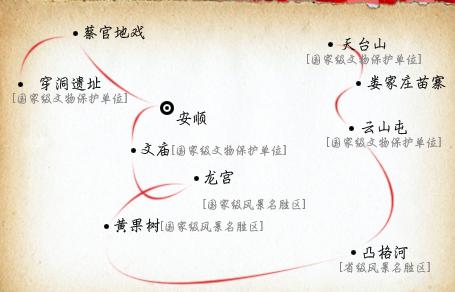 安顺文化底蕴深厚,是贵州历史上开发最早的区域,是贵州省历史文化名城,具有穿洞文化、夜郎文化、牂牁文化、屯堡文化、三国文化、攀岩文化、三线文化等独特的文化优势。普定穿洞古人类文化遗址被誉为“亚洲文明之灯”;中国古代八大神秘文字之一的关岭“红崖天书”世称“千古之谜”;明代军事遗存屯堡村落和关岭古生物化石群堪称“世界唯一”;安顺蜡染被誉为“东方第一染”;安顺地戏被称为“中国戏剧活化石”。安顺是我党老一辈无产阶级革命家、全国“100位为新中国成立作出突出贡献的英雄模范人物”王若飞同志的故乡;也是中国国民党中常委“谷氏三兄弟”谷正伦、谷正刚、谷正鼎的故地。