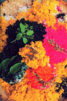 糯米饭是苗族主食之一,在苗族人民生活中占有重要地位,为男女老幼喜爱之食品,人们认为吃粘米饭不顶饿,味淡,不及糯米饭香,不用菜也能吃下,不用筷子,手捏着吃极为方便。凡逢走亲访友的礼品,各种节日(姊妹节)的主食,多为糯米做成的各种食品。有甑蒸绚白的糯米饭,染成五颜六色的花糯米饭,枕头形和三角的粽子、糯米粑,以及酿酒、长途旅行或上坡做活,多以竹制盒盛糯米饭储之随身带去食用。在新媳妇初见翁姑,女婿拜见岳丈时,糯米制作的上述礼品是必备的礼物。因此,糯米的用量比例是很大的。县境苗族人民煮粘米时普遍采用木甑蒸和鼎罐煮闷熟。多是按米放水,不滤米汤,群众称为“按汤饭”,苗语称“告翁贺”,食之既不淡味,又有营养。糯米是先用冷水泡发胀后,过滤放于木甑上蒸熟,再盛放于木盆内而食。粘稻或糯稻,多是舂一次吃一天,常年如此。认为现舂现煮,吃了养人,放久了的米是陈米,吃了不养人。粮食加工工具有石碓、水碾两种,是很早就使用的工具,每户必备。水碾(有称水磨的)碾米才是三几百年历史,据传是外族传入的。近水的寨每寨有架或数架水碾,也只有在农忙季节才使用,干旱主要还是依靠石碓舂米。加工方法,把焙笼烘干或日晒干的稻谷放入石臼内,用脚踏碓杆后端,使舂杆起落,利用落下的力来舂米,舂好即筛去糠而得净米。