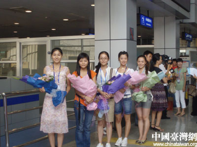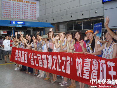 | 中国台湾网8月6日长沙消息 昨天下午4点45分,参加“湖湘文化之旅”的140多名台湾代表抵达湖南长沙黄花机场。这140多名代表主要是来自台北艺术大学、东吴大学、辅仁大学、实践大学、台南科技大学等10多所台湾院校的院长、教授、教师、研究生、大学生。他们将与60多名来自湖南大学、湖南师范大学、湖南理工学院的湖南学子一起牵手“湖湘文化之旅” 交流活动,为期10天。