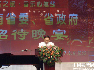 中国台湾网8月7日长沙消息 昨天下午,湖南省委副书记梅克保会见了“音乐心航线”的台湾代表团嘉宾,并代表湖南省省委省政府宴请了来自台湾宝岛参加此次“湖湘文化之旅”的嘉宾。欢迎宴会由湖南省台办主任、湘台交流促进会会长畲友文主持。
