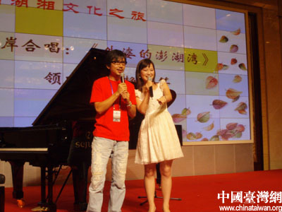 宴会开始之后,两岸学子还进行了精彩的才艺表演,其中来自台湾的徐筠芷弹奏的《浏阳河》得到了在场所有人的好评,弹到动情之处,听众都报以热烈的掌声叫“好”。由湖南师范大学的张静弘和台湾华新国际机构谢宪忠合唱的《外婆家的澎湖湾》将宴会推向了高潮,两岸学子在欢乐融融的气氛下度过了愉快的时光。(谢晓萍)