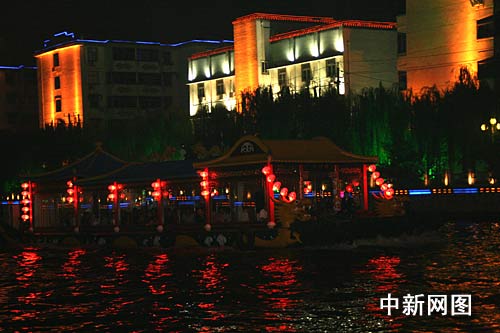 晚上9时许,记者在运河边看到,古运河的游船忙得不可开交,许多游客排着队等着感受“船在水中走,人在画中游”的胜景。