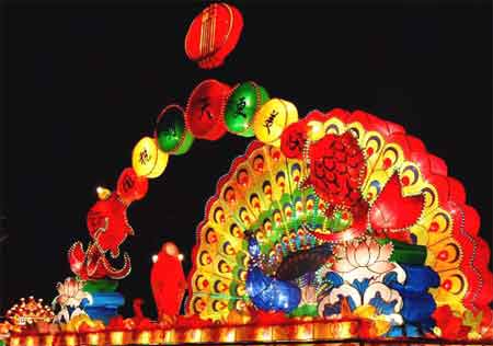 早在南宋《武林旧事》中,记载中秋夜节俗,就有‘将“一点红”灯放入江中漂流玩耍的活动。中秋玩花灯,多集中在南方。如前述的佛山秋色会上,就有各种各式的彩灯:芝麻灯、蛋壳灯、刨花灯、稻草灯、鱼鳞灯、谷壳灯、瓜籽灯及鸟兽花树灯等,令人赞叹。