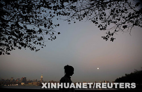 9月25日,在美国新泽西州霍博肯,一名女子从哈得孙河附近经过。 新华社/路透