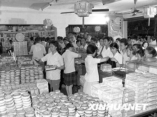 1978年中秋佳节,上海各食品店月饼上市。今年上海中秋月饼的供应数量多,质量高,品种丰富。新华社记者张平摄
