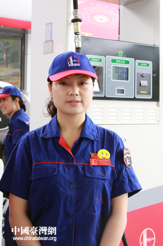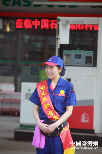 在绵阳科创园加油站,每辆来加油的车辆都能得到免费擦洗车窗的服务。员工们也以为顾客得到满意的服务自豪。(中国台湾网 杨丽 摄)