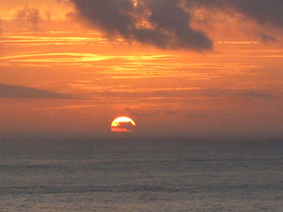 山巅观日 南麂岛有两座山,一座叫南麂山,高192米,另一座叫大山,高229米。这两山蟠踞在一起,东南面形成了大沙澳,西北面形成了马祖澳,站在山巅可望东海万顷云涛。尤其是看日 出,一轮红日,跃出在海平线上;红日西沉,则满天彩霞,逐步消失于苍茫的暮色之中,尤为壮观!