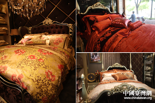 丝绸之路集团展出的部分精美家纺类丝绸产品(中国台湾网 李典典摄)
