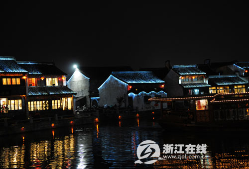 浙江在线嘉兴4月22日讯(记者 廖小清/文 孙俊伟/摄)今天晚上,参加“诗画江南——全国知名网络媒体浙江行”的数十名网记们在结束白天的采访后,夜探嘉兴月河。