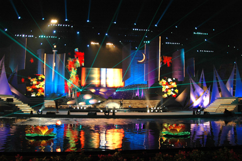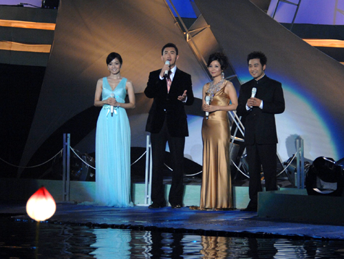 郭霁红说,甚至前段时间传说要刮台风,导演们都是从北京来的,对福建的台风厉害早有耳闻,所以晚会准备了两套方案,要是台风如期来,晚会就只好搬到酒店的一个内部空间去做,幸好,晚会时风和月丽。特别是无论从舞蹈到焰火,没有出一点问题,她对效果非常满意,觉得做到这样很难得,很高兴。