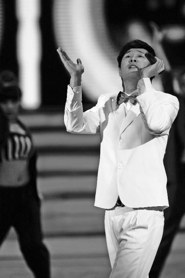 和语言类节目相比,歌舞类节目却亮点不断。比如舞蹈与武术相结合的作品《对弈》,演出团队就是2008年奥运会开幕式中太极表演的团队。舞蹈开场,两位长发披肩的“大侠”坐在木桩上,通过“内功”下围棋,大屏幕上营造出的玄幻气氛神似《天龙八部》中的“珍珑棋局”,木桩下面,穿着考究的男女舞蹈演员们分成两派,分别展示矫健的武术和柔美的舞蹈,“舞+武”的形式让人眼前一亮。