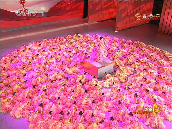 新浪娱乐讯 2月13日(除夕)晚20:00,2010年央视春节晚会通过中央电视台面向全球直播,新浪娱乐同步视频图文直播。图为花朵般的伴舞