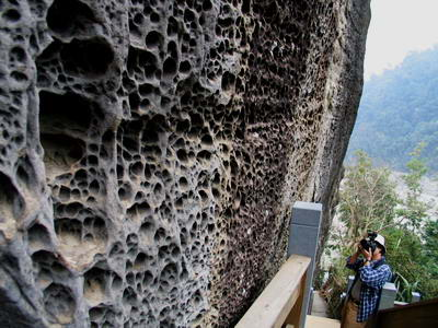 (图/青蛙石下的蜂窝洞 王以瑾摄影)