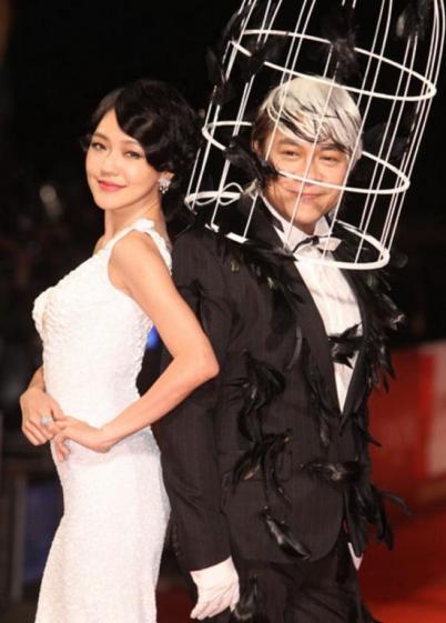 2010年11月20日晚,第47届台湾电影金马奖颁奖礼在台北桃园举行。图为小s、蔡康永黑白配。
