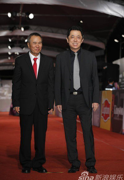 侯孝贤(左)朱延平现身金马奖红毯