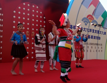 中国台湾网05年10月23日北京消息 今天上午9时30分,京台民间民俗文化展演在龙潭湖公园中心广场举行。作为海峡两岸文化节暨京台文化周活动的重头戏之一,两岸民间艺术民俗文化同台交流演出,给北京观众带来一场丰富多彩的中华文化盛宴,受到民众的热烈欢迎。
