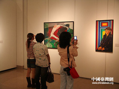 展出位于三楼展厅,在短短几个小时内就吸引了上千群众,六十多岁的丁老先生也是搞美术工作的,而且家就住在美术馆附近。“看了半辈子的美术展了,不知道看了多少国外的展品,今天终于有机会看到咱台湾的美术作品了,真不容易啊!”老人家用微微颤抖的声音告诉记者。他说:“孙子上辅导班了没来,给他拍点照片带回去,孩子也是学画画的。”可能是眼神不大好,他一会近看、一会远远打量,然后小心翼翼的拍照。