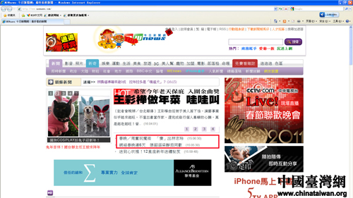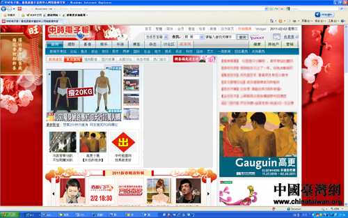 台湾中时电子报在首页显著位置设置专区,直播央视春晚。