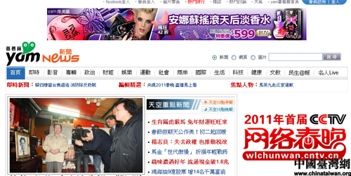 台湾“yam蕃薯藤网”在首页显著位置设置专区,直播央视春晚。