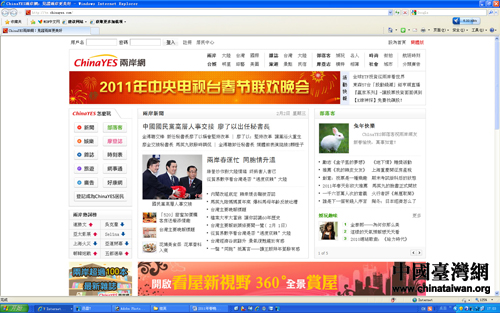 两岸网在首页显著位置设置专区,直播央视春晚。