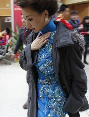 2011年1月30日讯,北京,央视春晚1月29日在央视一号演播大厅展开第五次带妆彩排。主持人董卿、周涛、朱军、张泽群现身彩排后台。董卿身穿蓝色华美旗袍行色匆匆,朱军还在后台接受了媒体的访问。