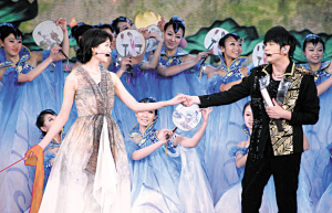 周杰伦(前右)和林志玲表演歌曲《兰亭序》