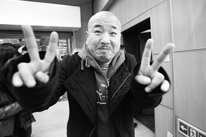 | 第二次上春晚的王小利,在后台特别活跃,看见记者拍照,摆出搞怪表情 |