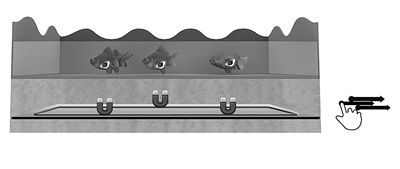 鱼体内有铁块,魔术师通过控制水下的磁铁来指挥鱼的行进。