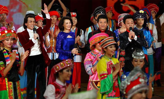 久未露面的刘欢在晚会尾声时演唱了歌曲《大爱》。这首歌曲的头两句是:“亲,就在我面前;亲,延伸我的视线……”有网友惊呼:“亲……你这不是淘宝体吗?”