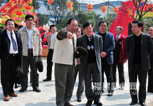 2月24日,马祖县长杨绥生(中右)带领马祖乡亲一行参观马尾灯会展区,其中马祖展出灯群是以杨绥生提出的“乐活马祖,永续经营”为主题而制作的。当晚,第八届“两马同春闹元宵”将亮灯。