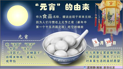 新华网天津2月26日专电(记者周润健、蔡玉高)2月28日是正月十五元宵节。“元宵”作为元宵节一种独特的风味小吃,入口香甜,令人齿颊留香。那么,元宵节为何要吃元宵呢?