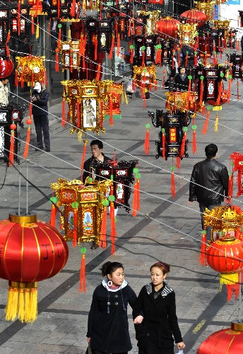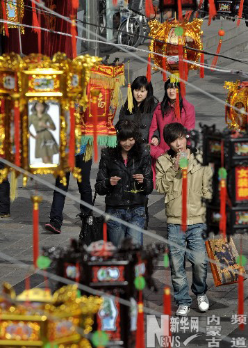 2月6日,呼和浩特市商业区的商家挂起彩灯。 元宵节即将来临,呼和浩特市的主要街道上悬挂起各种彩灯,让市民感受到了浓浓的节日气氛。 新华社记者 李欣摄