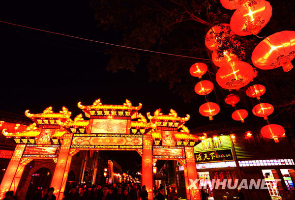元宵节将至,夜幕下的福州市流光溢彩,上万盏传统宫灯闪烁街头,营造出一派吉祥喜庆的节日气氛。新华社记者 张国俊 摄