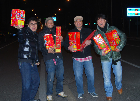 饭后,4人花了1万元人民币买了4大箱鞭炮,把保姆车随意停大马路中间,就在北京大街上开始放鞭炮,周华健怕炮声,找借口说要负责维持粉丝秩序,一溜烟就冲到路旁。李宗盛拿了香及鞭炮,就是不敢点,最后索性承认自己没胆放。罗大佑及张震岳胆子最大,抢着放炮还与工作人员PK。