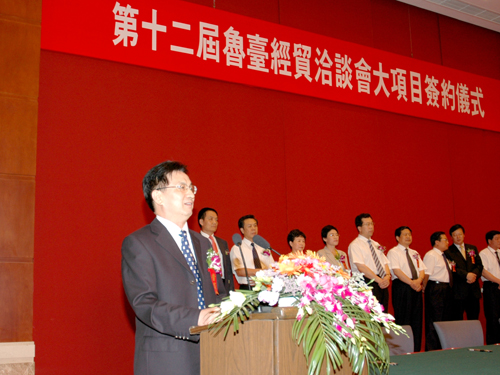 2006年9月1日,山东省台办主任杨庆文主持第十二届鲁台会大项目签约仪式并致辞