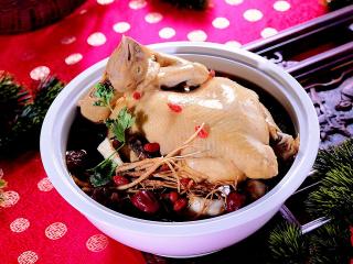 主厨先以当归、熟地、川芎、桂枝、枸杞、大茴、等十种药材慢熬5个钟头,滤过药材后取汤汁备用;再取甲鱼、排骨用热水川烫后洗净,与药材精华炼制成药汤及米酒炖煮约一小时。