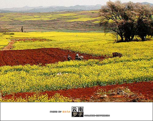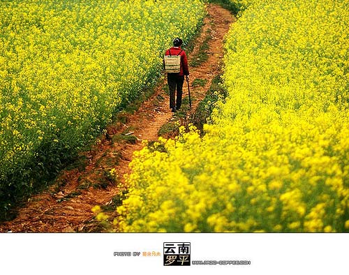 摄影:罗平地处温湿地带,阴雨天较多,这给拍摄带来一定难度。因为拍摄油菜花一般需要较明亮的光线,这样才能表现出它的鲜亮和艳丽。切勿逆光拍摄,尤其是当你面对大场景时,因为这样拍出的油菜花会显得灰暗,毫无生机。一般采用顺光或侧光,拍出的照片亮丽明快,层次分明,色彩饱和度高。