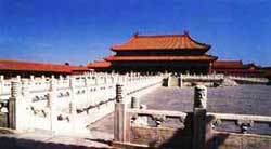 无与伦比的古代建筑杰作 紫禁城占地72万多平方米,共有宫殿9000多间,都是木结构、黄琉璃瓦顶、青白石底座,饰以金碧辉煌的彩画。这些宫殿是沿着一条南北向中轴线排列,并向两旁展开,南北取直,左右对称。这条中轴线不仅贯穿在紫禁城内,而且南达永定门,北到鼓楼、钟楼,贯穿了整个城市,气魄宏伟,规划严整,极为壮观。建筑学家们认为故宫的设计与建筑,实在是一个无与伦比的杰作,它的平面布局,立体效果,以及形式上的雄伟、堂皇、庄严、和谐,都可以说是上罕见的。它标志着我们祖国悠久的文化传统,显示着五百多年前匠师们在建筑上的卓越成就。