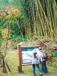 走上石盘谷步道 , 穿越密密竹林与溪石岩盘。