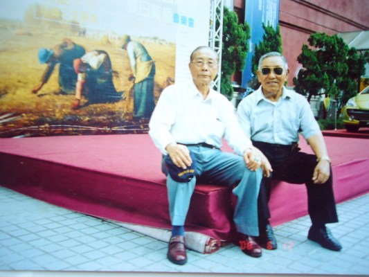 2008年5月12日,席增光和赵万富参观法国米勒名画运台展览时合影。(注:席增光是席贤理的叔公。)
