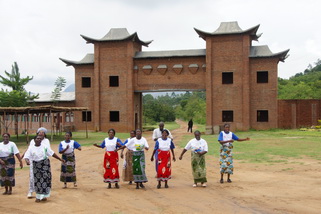 潘大使查看关怀中心里的孤儿宿舍 潘大使与关怀中心员工合影 |