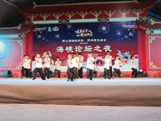 五祖拳表演亮相海峡论坛之夜。(张韧 摄)