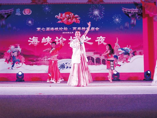 两岸特色庙会期间,在海沧市民广场,每晚都有不同主题的晚会呈现给市民朋友,尽显同根同源,同文同语的“两岸缘”,让市民朋友有得看、有得吃、有得玩。