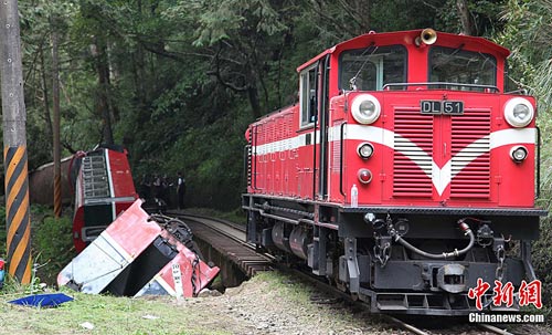 4月27日,台湾阿里山景区发生小火车翻车事故,现场被当地警方封锁。经确认已有5名大陆游客遇难。中新社发 沈存旭 摄