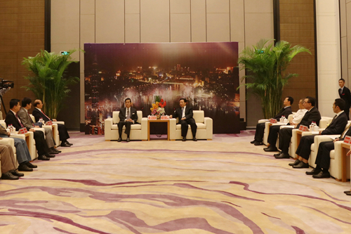 9月21日,四川省政协常务副主席晏永和、宜宾市委书记王铭辉、市长徐进等在宜宾市会见前来参加“同根同源两岸情 文化抗战李庄行”交流活动的中国国民党中央评议委员会主席团主席张荣恭等台湾嘉宾一行。
